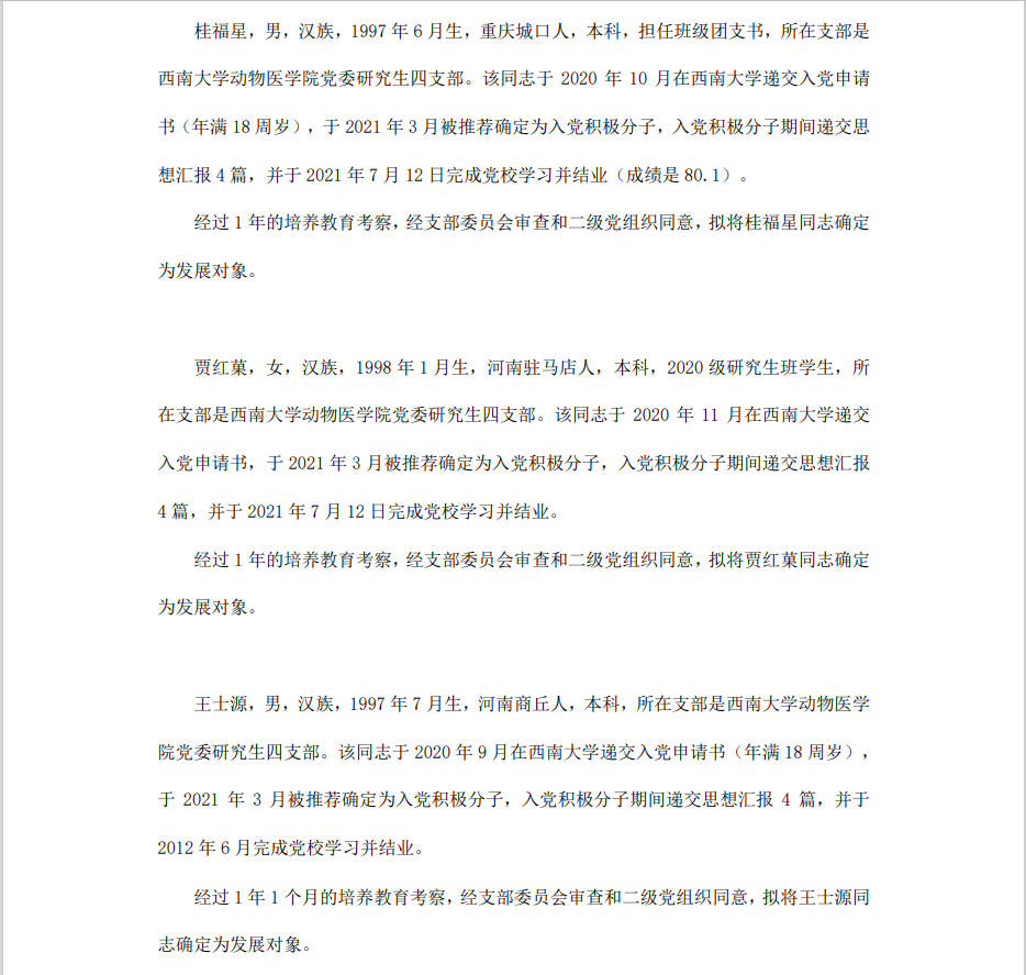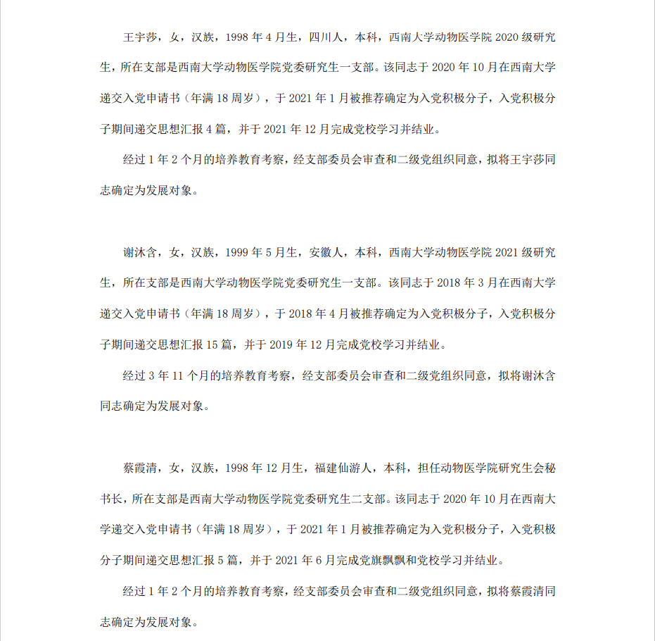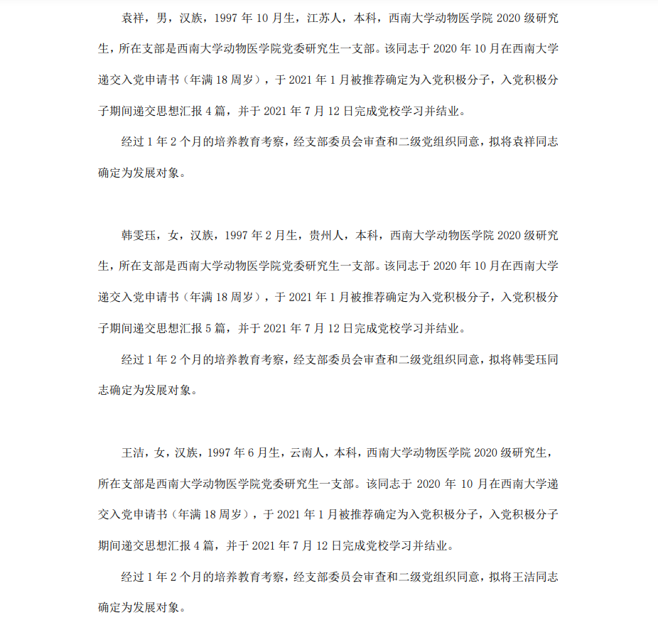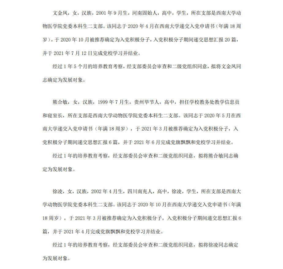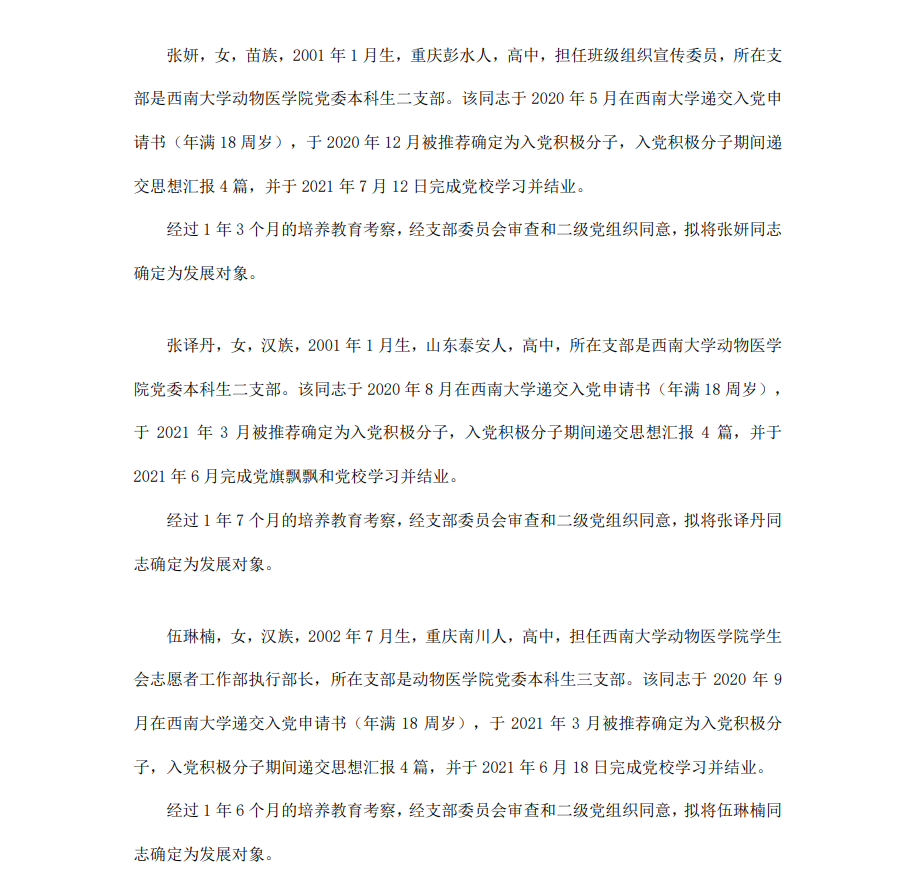委员会讨论,拟定龙潜等49名同学为近期发展对象,现将其基本情况予以公示。