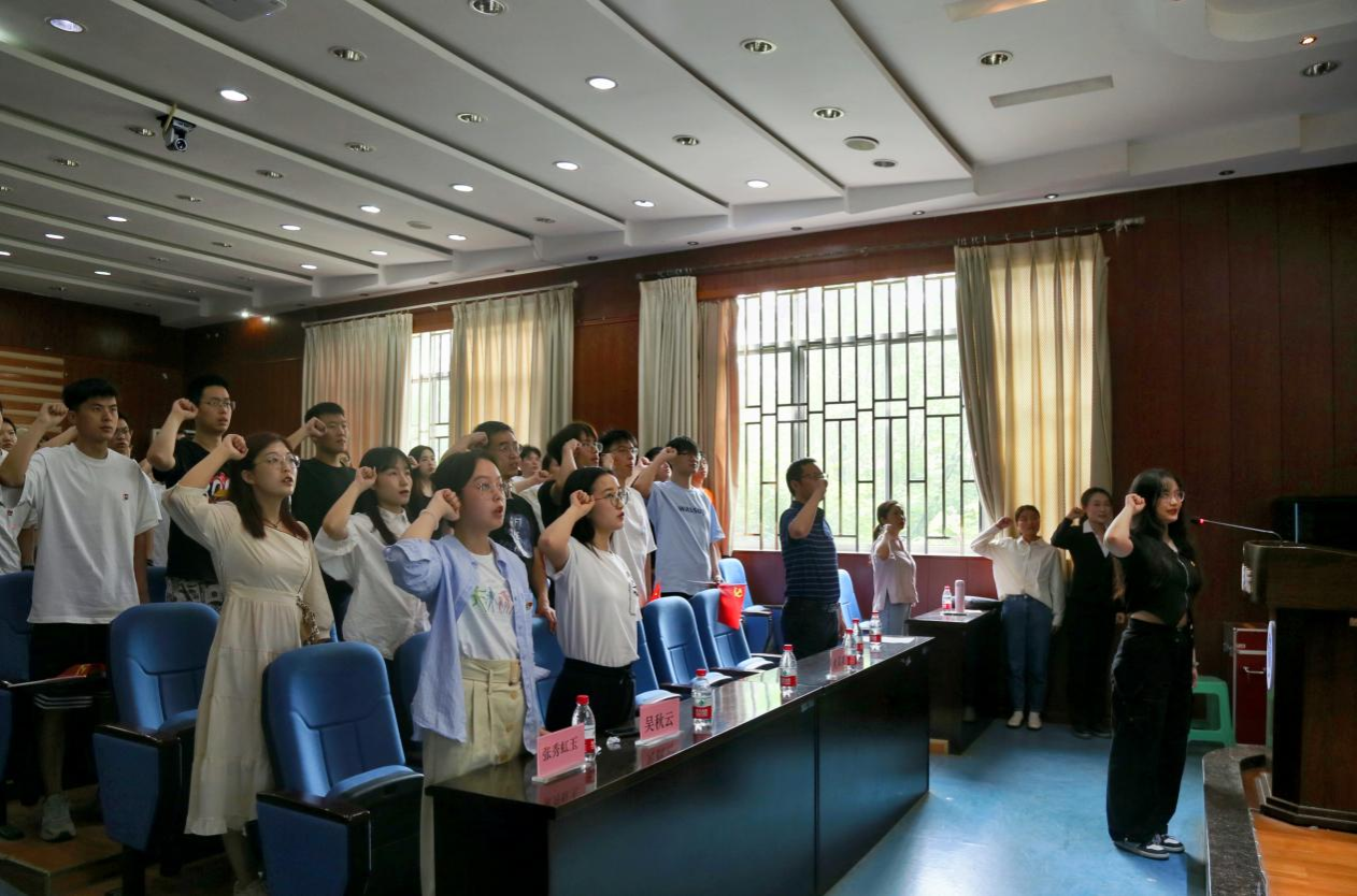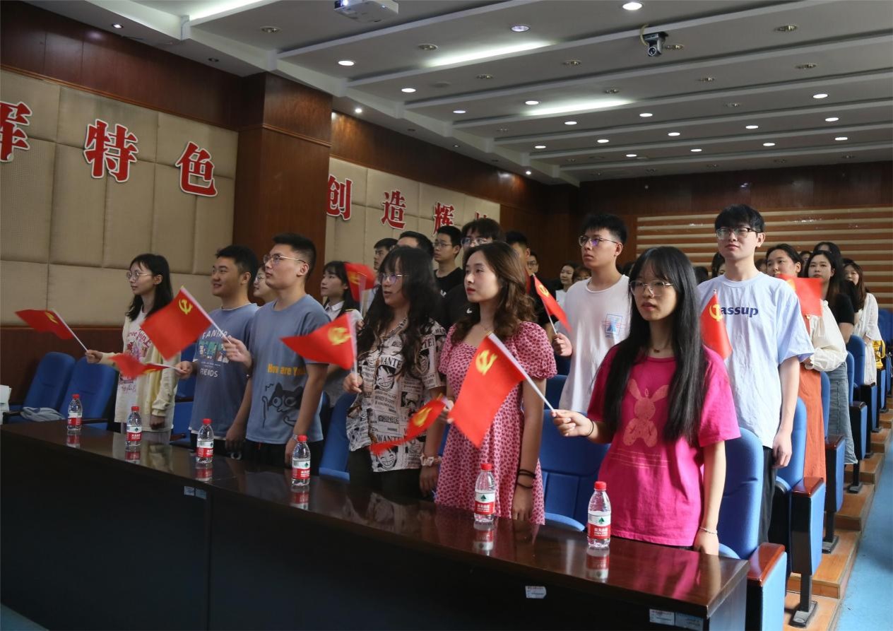培训会现场,毕业生党员代表魏宏祯带领全体毕业生党员进行宣誓,面对着鲜红的党旗,铮铮誓词已经深深烙印在在场所有共产党员的灵魂深处,以坚定的理想信念砥砺对党的赤诚之心。