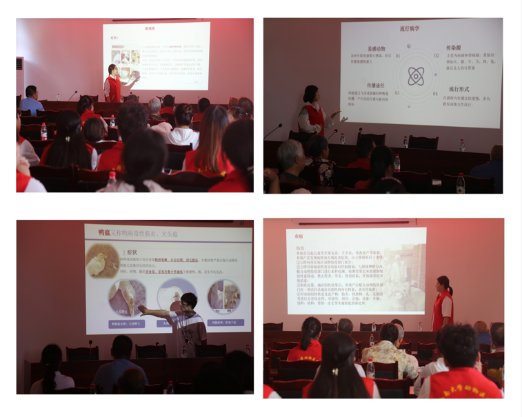 本科生第一党支部、本科生第二党支部成员向当地群众讲解常见畜禽疾病以及相应的防控措施,大学生党员服务团成员为村民分发宣传手册,结合自身专业所学知识为乡村振兴事业赋能。