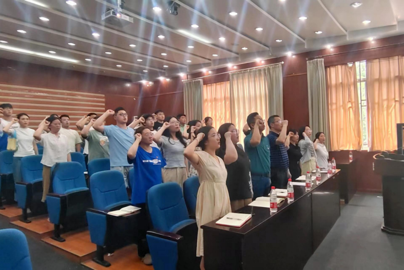 大会在庄严的国歌声中拉开帷幕,全体党员在庄严的党旗下重温入党誓词,铿锵有力的誓言回荡在会议室内,表达了对党的忠诚和决心。