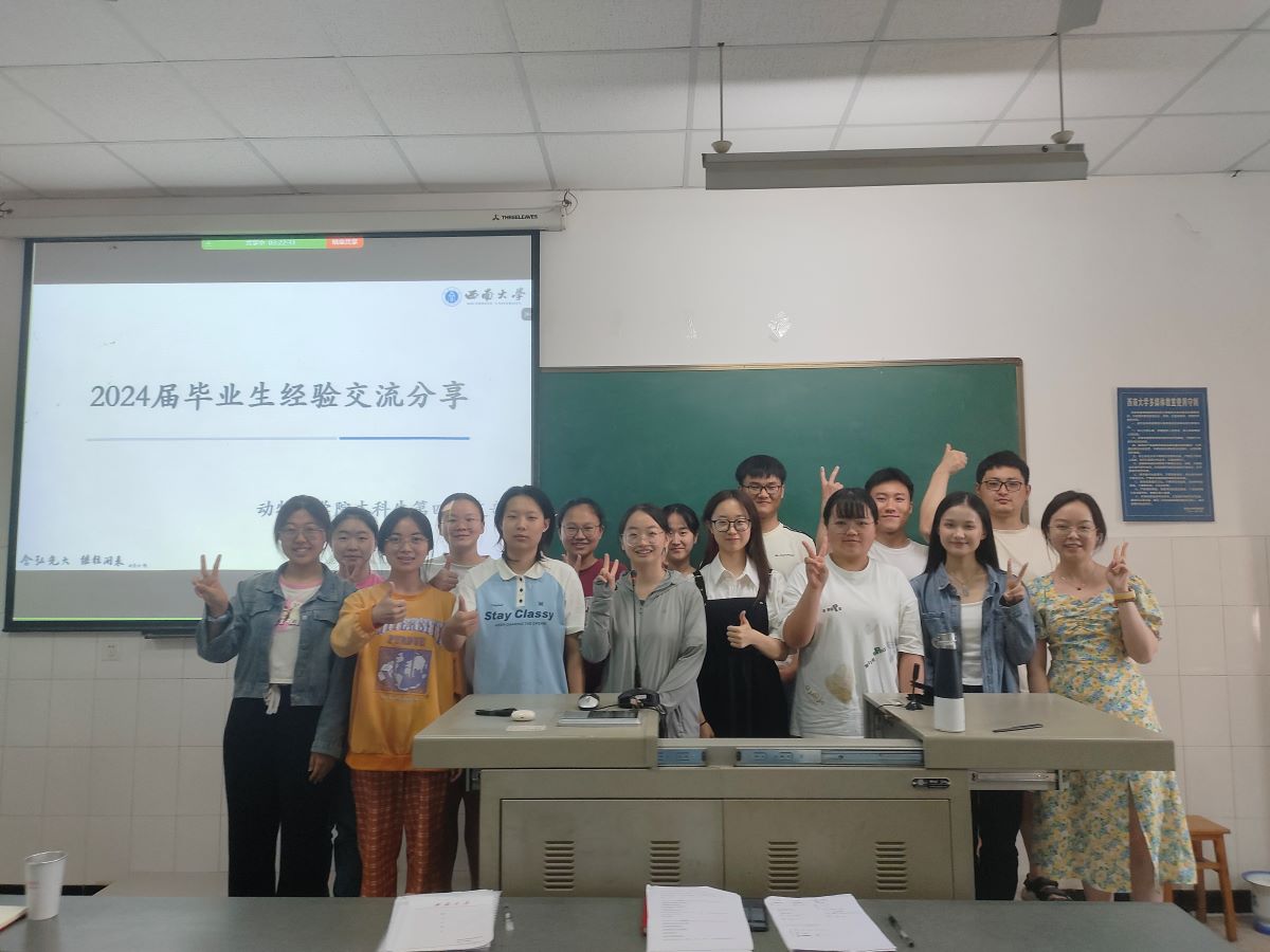 活动伊始,支部党员一起重温入党誓词,感悟涌动初心。接下来,七名毕业生党员主动分享自己的升学和就业经验,其中张昕杰、陈莲莲就自身保研经历,分享了自己的学习经验、学习方法、保研流程与时间规划;刘林、段荣杰根据自身考研经历,向大家讲解了考研择校、考研规划和学习方法,鼓励大家奋勇争先;王卓睿、安凯、李可儿详细讲述了他们的求职及找工作的注意事项。本科生第四党支部已连续三年开展此项交流分享,毕业生党员们细致全面的分享,让学弟学妹们对中兽和动药专业就业前景有了更为深入的认识,也对自身未来升学就业有了更为清晰的规划。