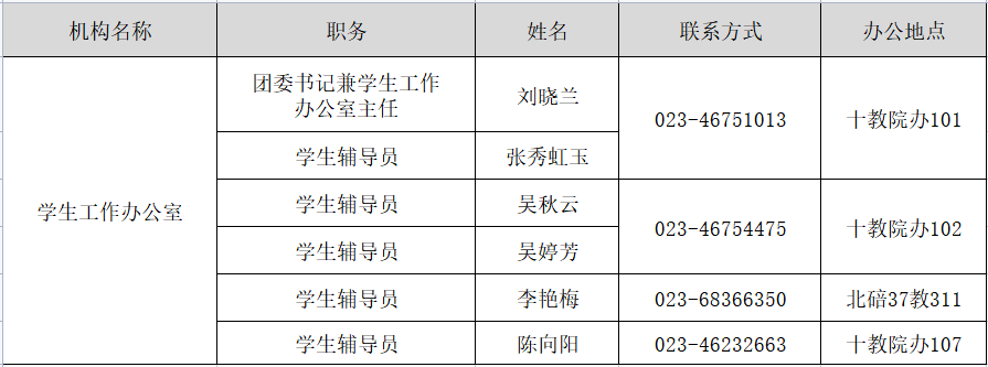 学生工作办公室设置