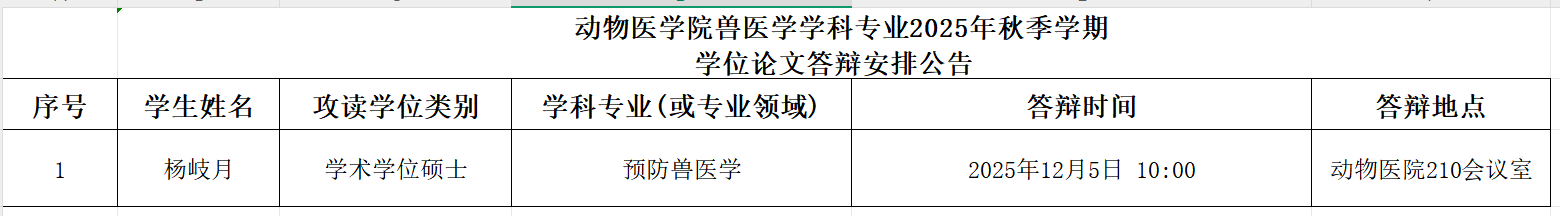 韩国污漫 兽医学学科专业2025年秋季学期学位论文答辩安排公告