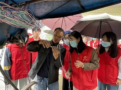 参与实践活动,弘扬劳动精神。在学院黄书记和实践指导老师的带领下,同学们来到了重庆市荣昌区直升镇。同学们为农民养殖户清理杂草,消毒圈舍,给鸡、鹅注射疫苗。在活动过程中,天公不作美,下起了蒙蒙细雨,但这丝毫不影响同学们的积极性,全都忘我的投入到活动中,体现了韩国污漫