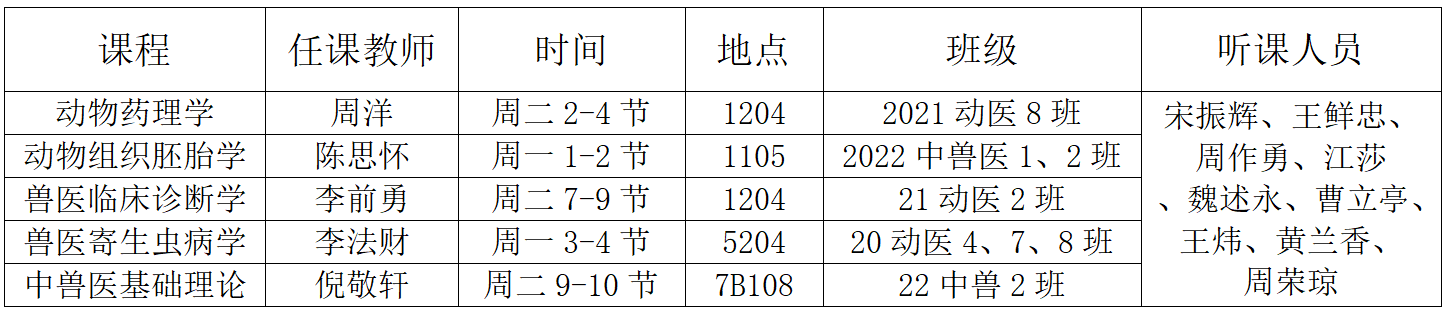 课堂教学质量评价表》11月10日之前提交到学院存档。各个系组织研讨,重点内容是如何推进专业建设,进一步完善学院动物医学类专业人才培养方案。