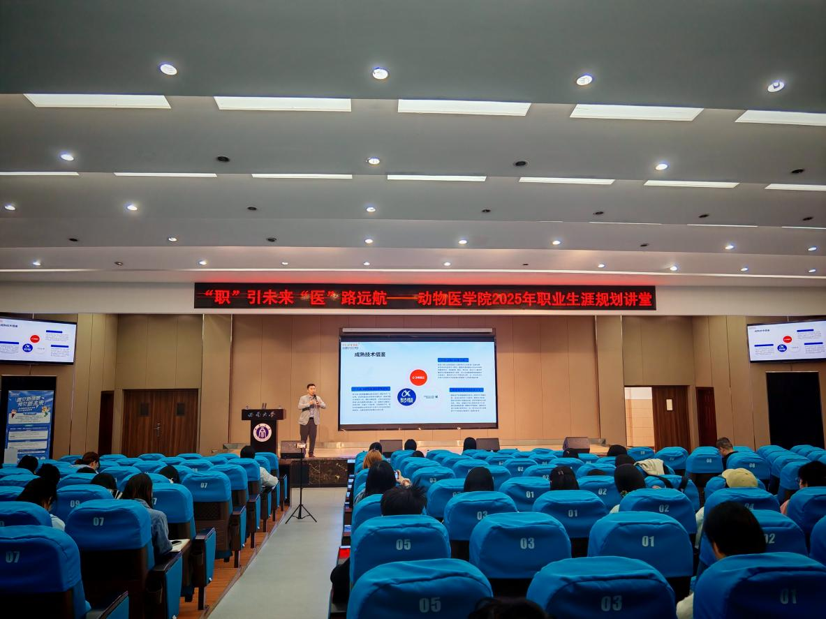 为帮助同学们拓宽就业视野、提升就业竞争力,2025年3月27日上午,学院特邀新瑞鹏宠物医疗集团副总裁董轶博士在荣昌校区2211报告厅(北碚校区设分会场)开展了“职”引未来 “医”路远航职业生涯规划讲座,学院共计200余师生参加此次讲座,讲座由韩国污漫