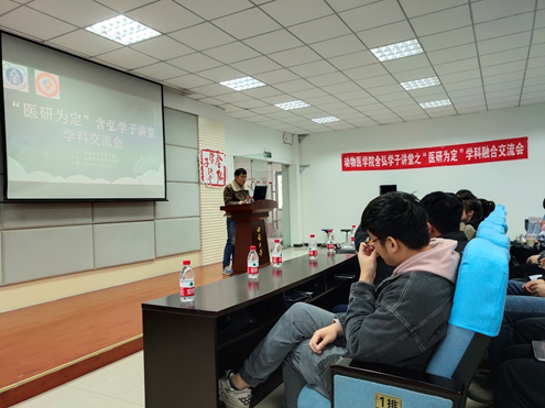 “医研为定”学科融合交流会在动物医院学术报告厅成功举办。学院教师谢三磊老师、校研究生会主席团代表迟少艺以及学院部分研究生出席此次交流会。