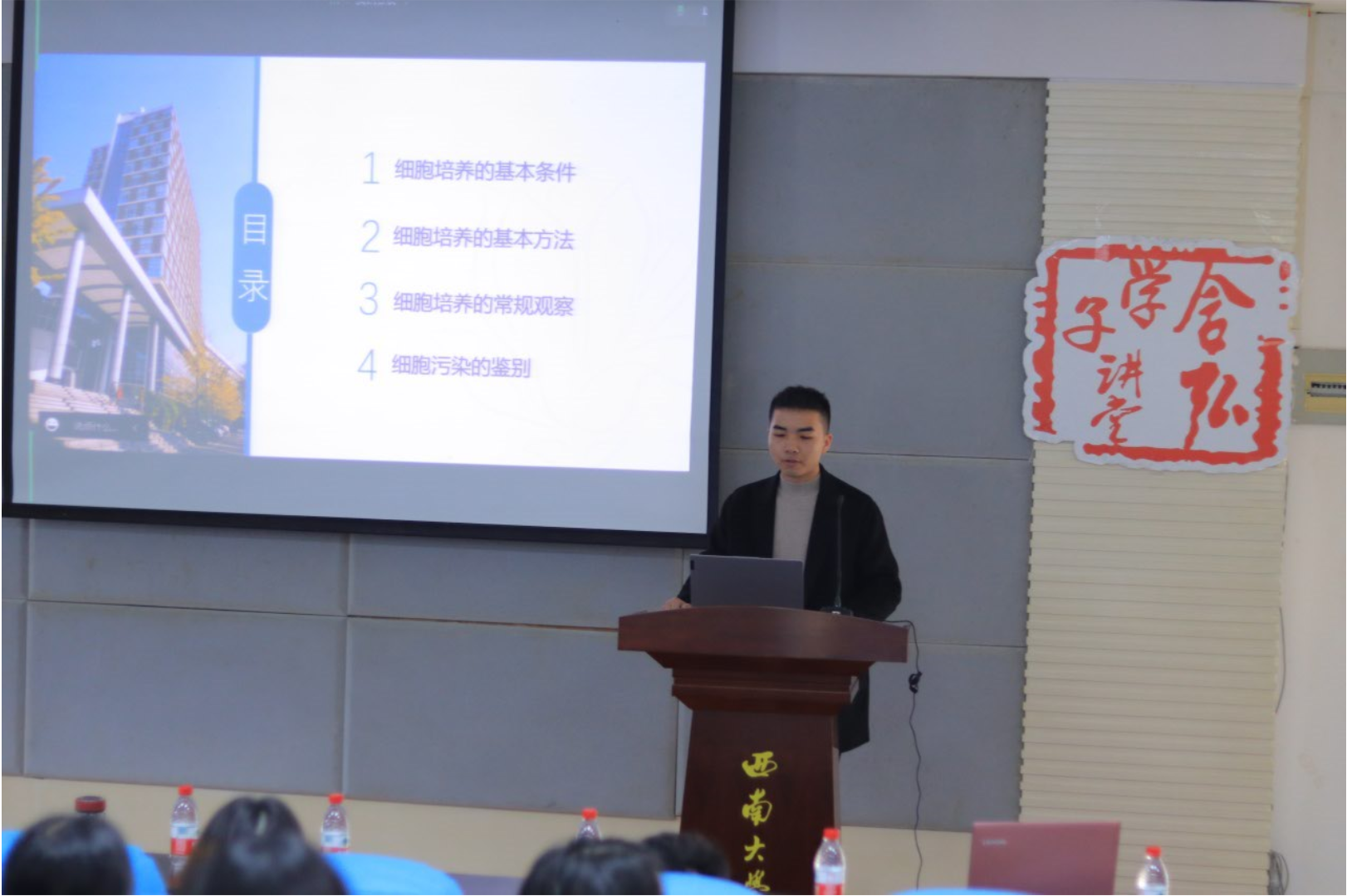 2021级预防兽医学研究生万超同学以《细胞培养技术》为题,从细胞培养条件、细胞传代培养、细胞的冻存与复苏等方面入手,系统地向同学们介绍了细胞培养的整个流程,让同学们更好地将细胞培养技术运用于科学研究。