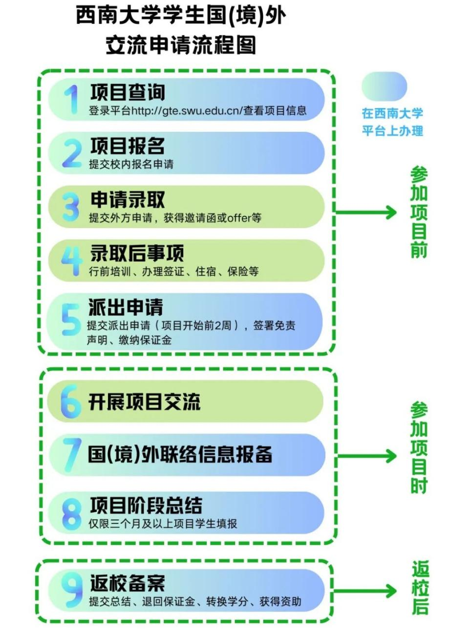 * 特别提示:在平台完成报名、派出与返校流程是获得学校专项经费资助以及认定国际学分的必要条件。