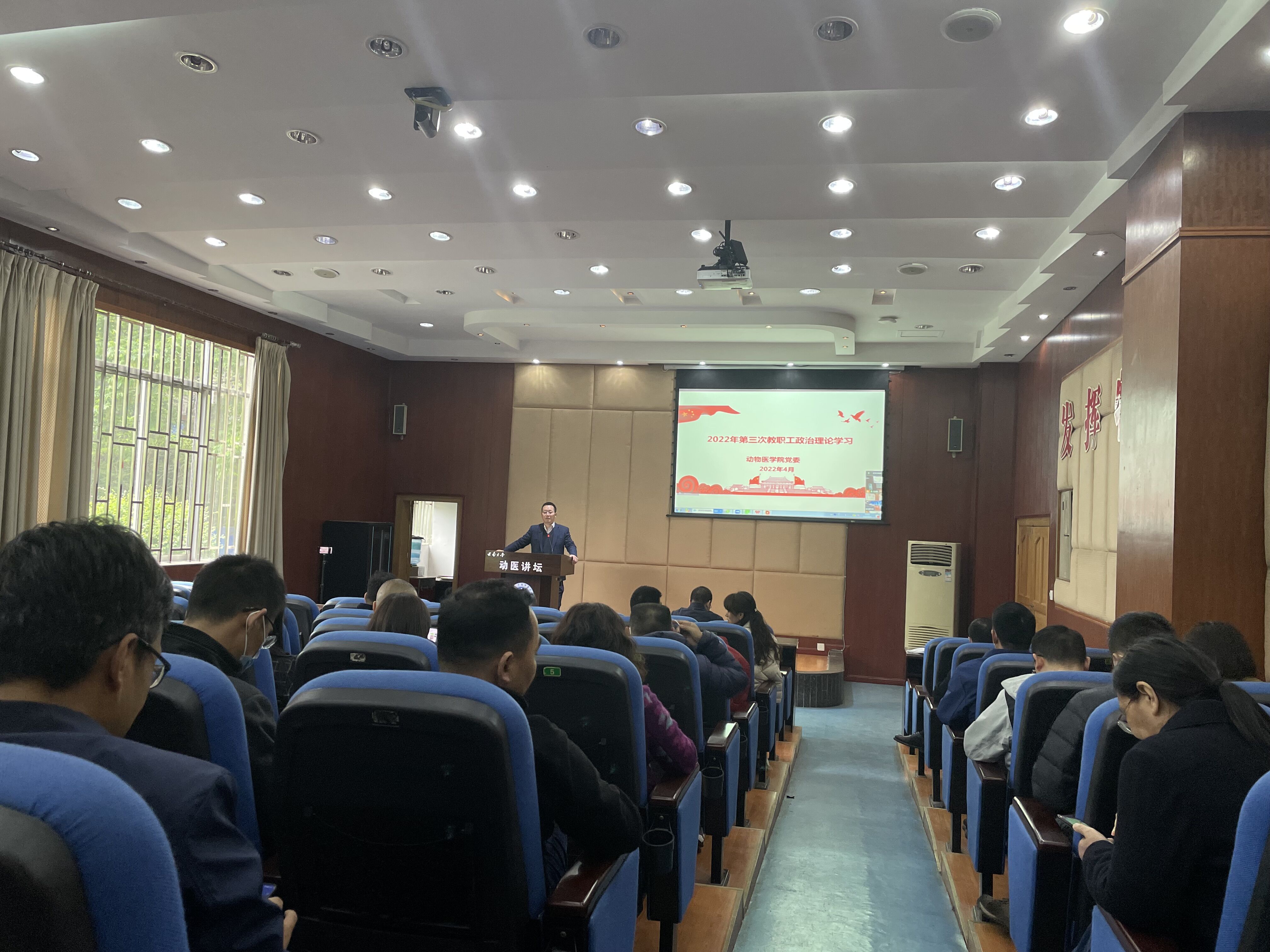 黄昌建带领全体教职工集中深入学习了习近平总书记2022年全国“两会”重要讲话精神和全国“两会”精神,呼吁全院教职工切实把学习成效转化为推动学院工作高质量发展的强大动力,以实际行动迎接党的二十大胜利召开。同时开展国家安全宣传教育,学习习近平总书记关于总体国家安全观重要论述和国家安全法律法规相关知识,深刻学习领会和把握总体国家安全观的核心要义、精神实质,切实履行好维护国家安全的职责和义务,不断提高担当意识和履职能力。理论学习之后,与会成员一同观看国家安全微电影。