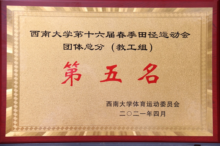 在此次赛事中硕果累累,最终获得团体总分第三名的好成绩。学生团体赛方面,在女子4*100米接力赛中获得银牌;在男子4*400米接力赛中获得第五名;在女子4*400米接力赛中获得第六名;在跳长绳比赛中获得第五名。学生个人赛方面,肖智天斩获男子三级跳金牌与男子跳远铜牌;吕红、杨苑、邹凌姿分获女子三级跳第二名、第五名、第八名;李毕成、左宗韬分别获得男子跳高第三名、第六名;梅芹、冉进蓉分别获得女子1500米第三名、第七名;熊思雨取得女子100米第四名与女子200米第五名;冉进蓉取得女子800米第五名;吕红取得女子跳高第六名。