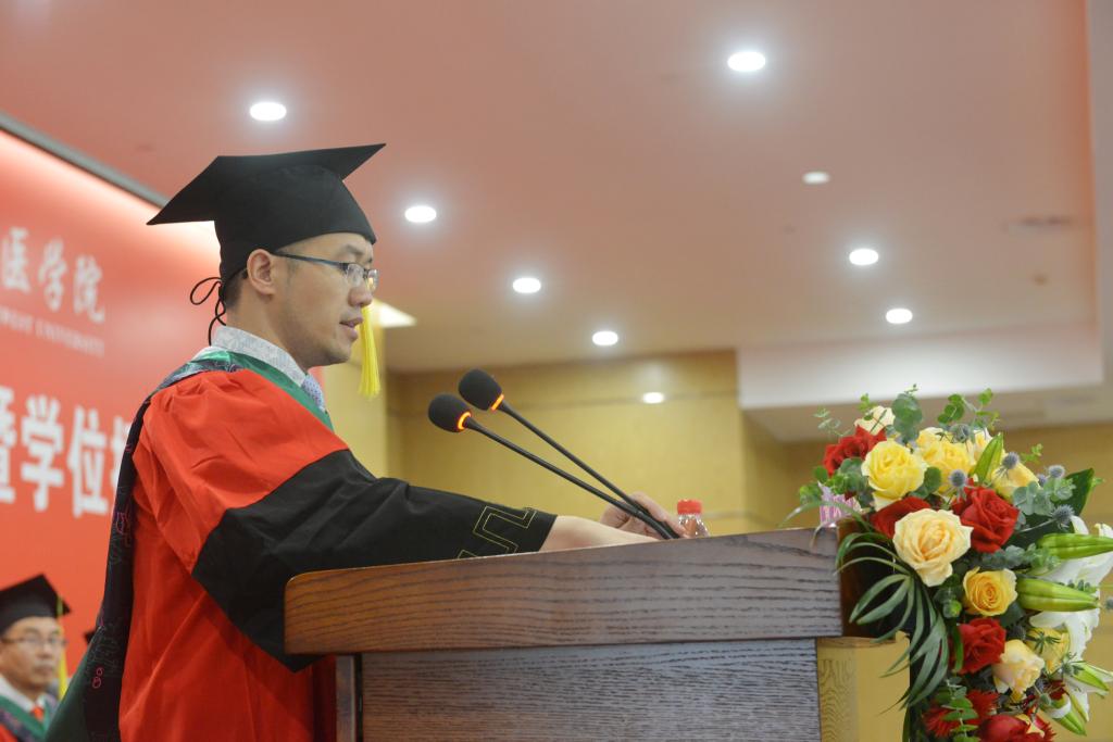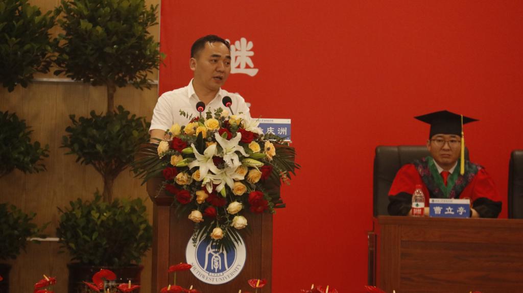 学院教师代表肖雄教授和高继业副教授在发言中向全院毕业生表示祝贺,高老师寄语毕业生要选择感激、选择善良、选择坚持、选择诗和远方,肖老师寄语毕业生要有梦想,敢于竞争、敢于挑战、开拓创新,踏踏实实做事,老老实实做人,成就更大的人生价值。
