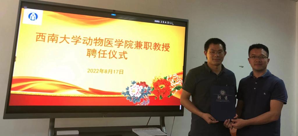 兼职教授聘任仪式在动物医院210会议室举行。学院院长方仁东教授、党委委员彭远义教授、王鲜忠教授及部分青年教师参加了聘任仪式和座谈会。仪式由方仁东院长主持。