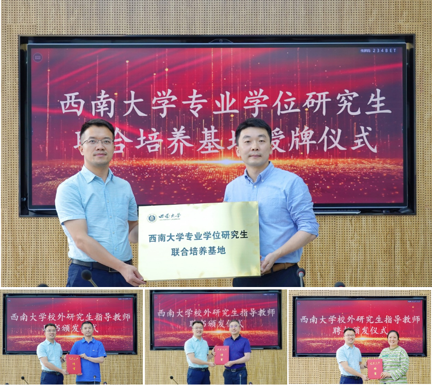 授予重庆市动物疫病预防控制中心专业学位研究生联合培养基地牌匾,并向部分新受聘的硕士研究生校外导师颁发聘书。