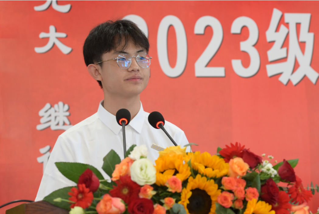 胡雨辰同学代表新生发言,深情感谢了为迎新工作辛勤付出的老师和学长学姐们,并表达了他与农学的羁绊——因为来自大山,所以更想为国家的乡村振兴贡献青春力量的坚定理想。