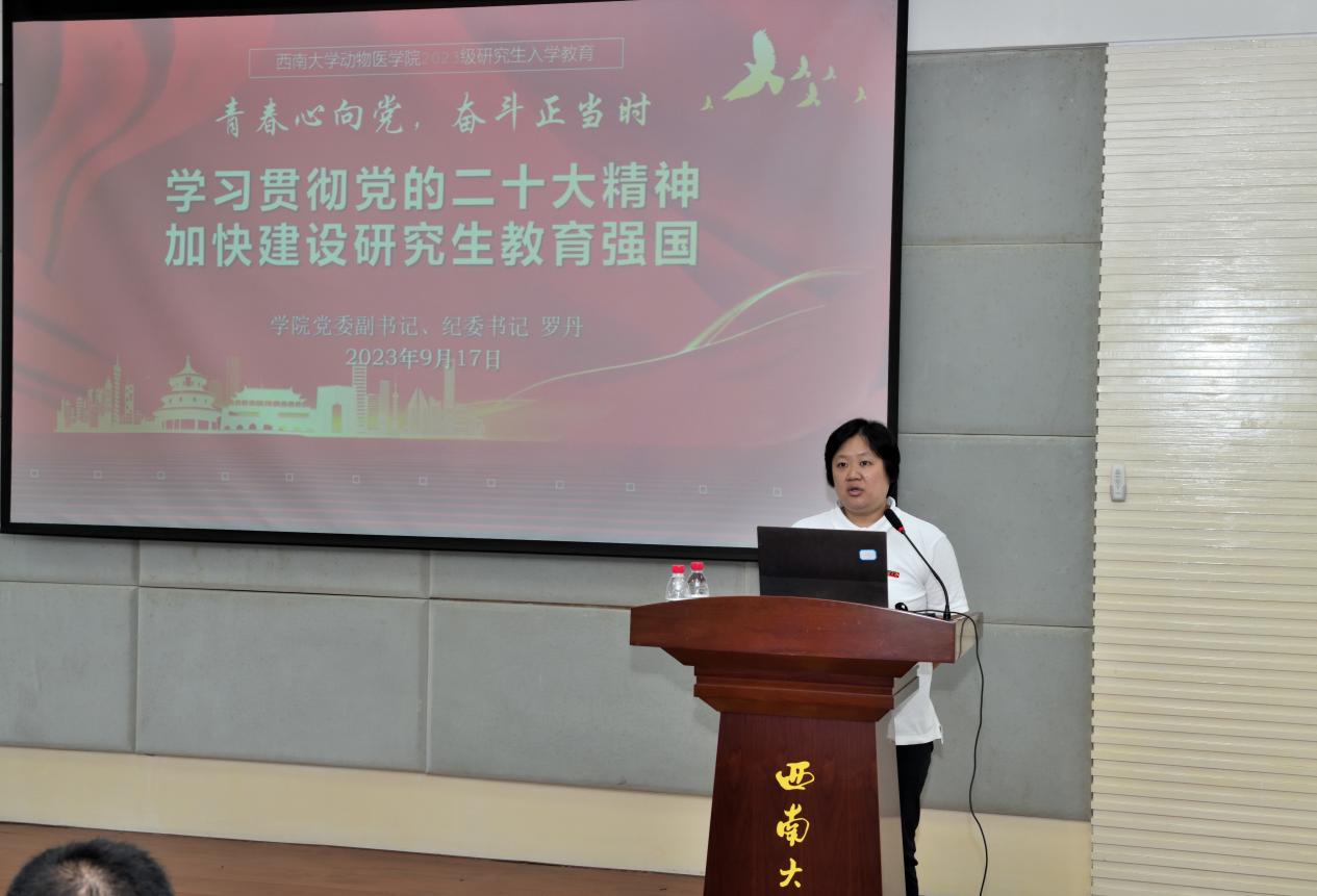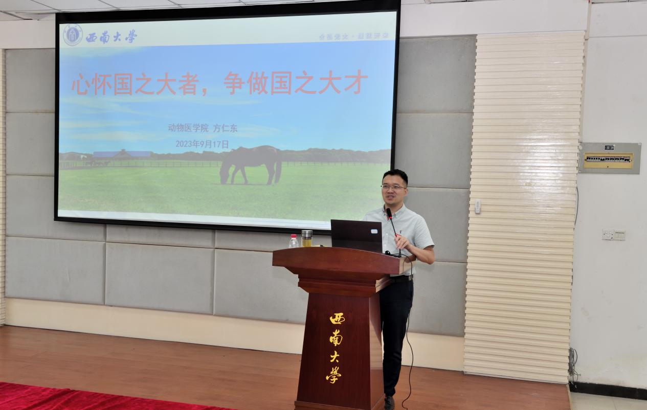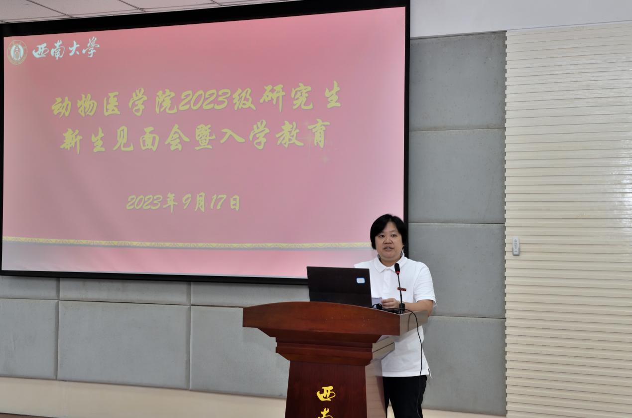 9月17日上午9点30分在动物医院报告厅举行2023级研究生新生见面会暨入学教育,学院党委书记黄昌建、院长方仁东、副院长宋振辉、研究生导师代表、研究生教学秘书、辅导员、班主任等出席本次见面会。会议由学院党委副书记,纪委书记罗丹主持,会议在全体人员奏唱《中华人民共和国国歌》中拉开帷幕。