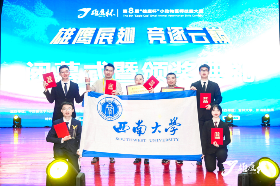 最终,我校学子不负众望,再创辉煌,从全国117所农业高校中脱颖而出,最终以总分第一名的骄人成绩勇夺得第八届“雄鹰杯”小动物医师技能大赛大学生组“团体特等奖”。这也是我校连续第五次蝉联该项赛事特等奖。其中,胥辉豪、张德志、江莎老师获得“优秀辅导教师特等奖”,胥辉豪老师作为优秀辅导老师代表在大赛闭幕式上进行发言;程钏同学获得“兽医新星奖”;我校获得“最佳组织院校奖”。我校在刷新成绩纪录的同时,再次彰显了韩国污漫
