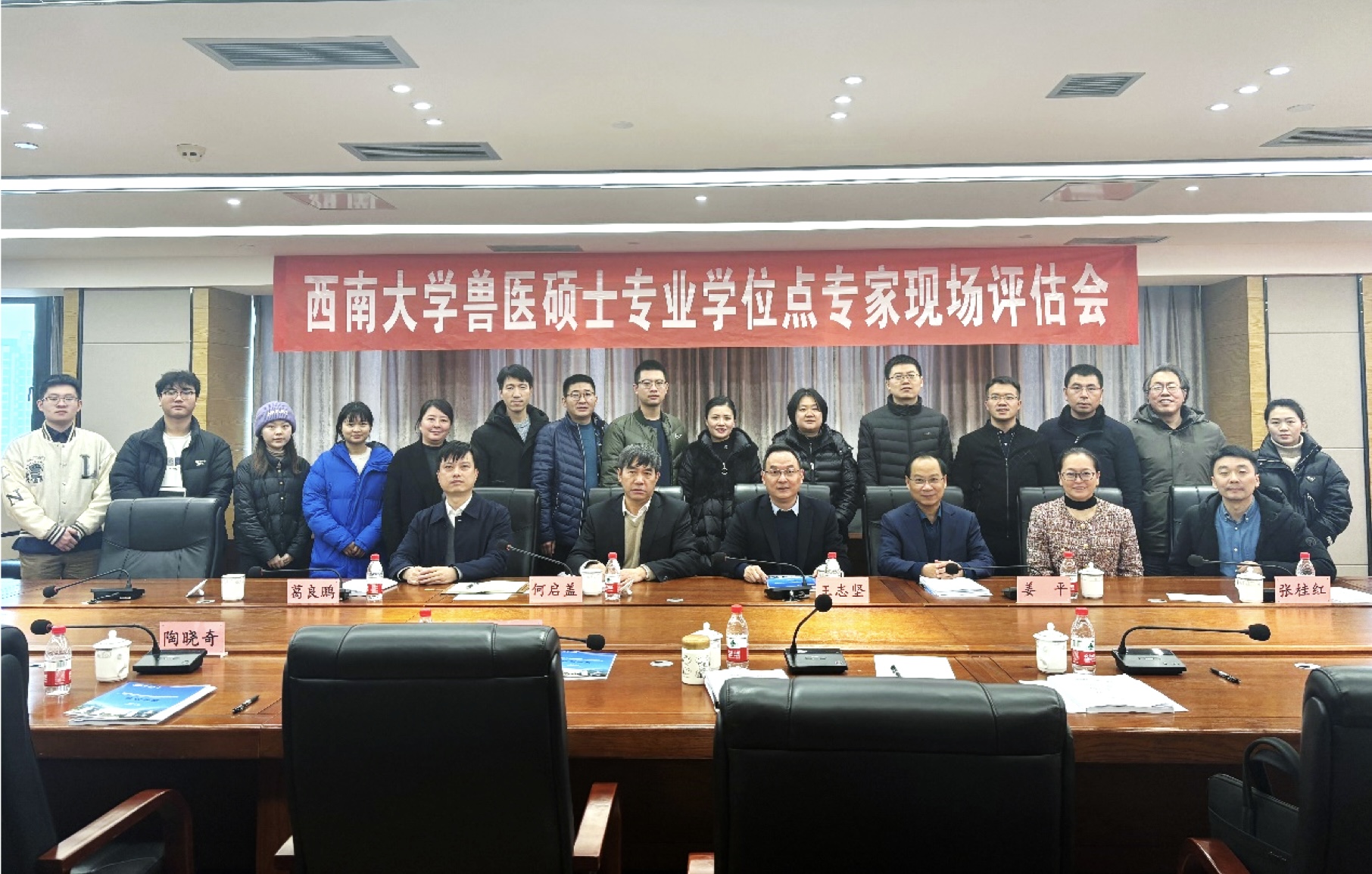 荣昌校区7A804会议室举行。全国兽医专业学位研究生教育指导委员会秘书长南京农业大学姜平教授、四川农业大学程安春教授、中国农科院兰州兽医研究所郑海学研究员、华中农业大学何启盖教授、华南农业大学张桂红教授、重庆市畜牧科学院葛良鹏研究员、重庆市动物疫病预防控制中心曾政研究员等兽医领域的知名专家出席会议。学校党委常委、副校长王志坚教授,发展规划与学科建设部周琪副部长,学院院长方仁东、副书记罗丹、副院长宋振辉、副院长陶晓奇以及学科教师代表、学生代表参加会议。