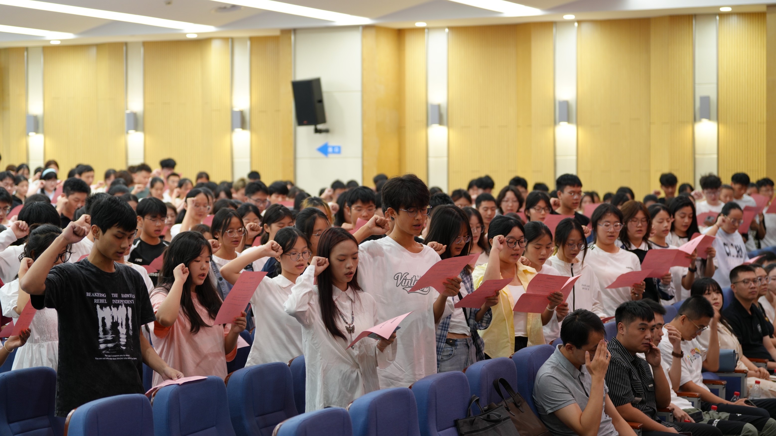 最后全体新生进行了入学誓词宣誓仪式,铿锵有力的誓词表达了他们对“同一个世界,同一种健康”的信念和坚守。