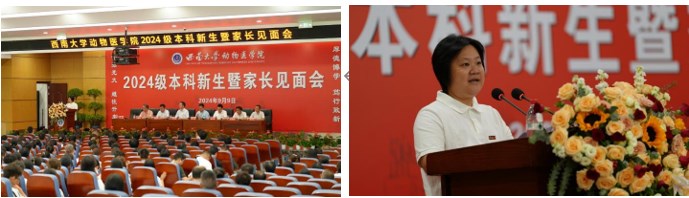2024级本科新生暨新生家长见面会在荣昌校区7B201报告厅隆重举行。学院党委书记黄昌建,院长方仁东,党委副书记、纪委书记罗丹,副院长宋振辉,副院长陶晓奇出席会议,各系主任、学院科级干部、新生辅导员和班主任、师生代表、2024级376位本科新生及新生家长代表共同参加。会议由罗丹主持。会议在庄严肃穆的国歌声中拉开帷幕。