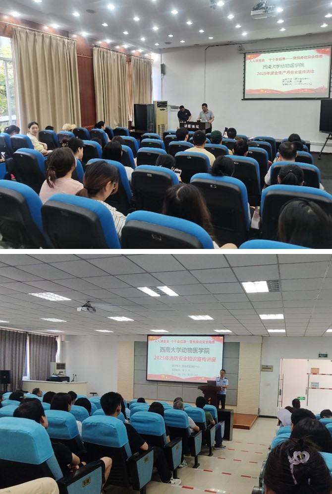 于2025年6月13日上午在荣昌校区3教、北碚动物医院,同步组织开展了全体实验室师生的消防安全宣传培训及实战演练系列活动。