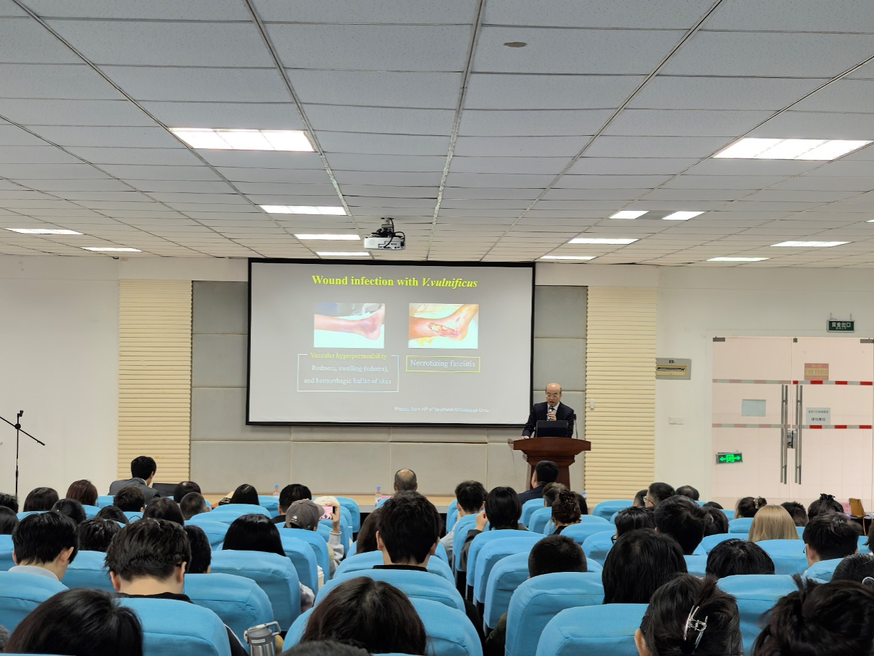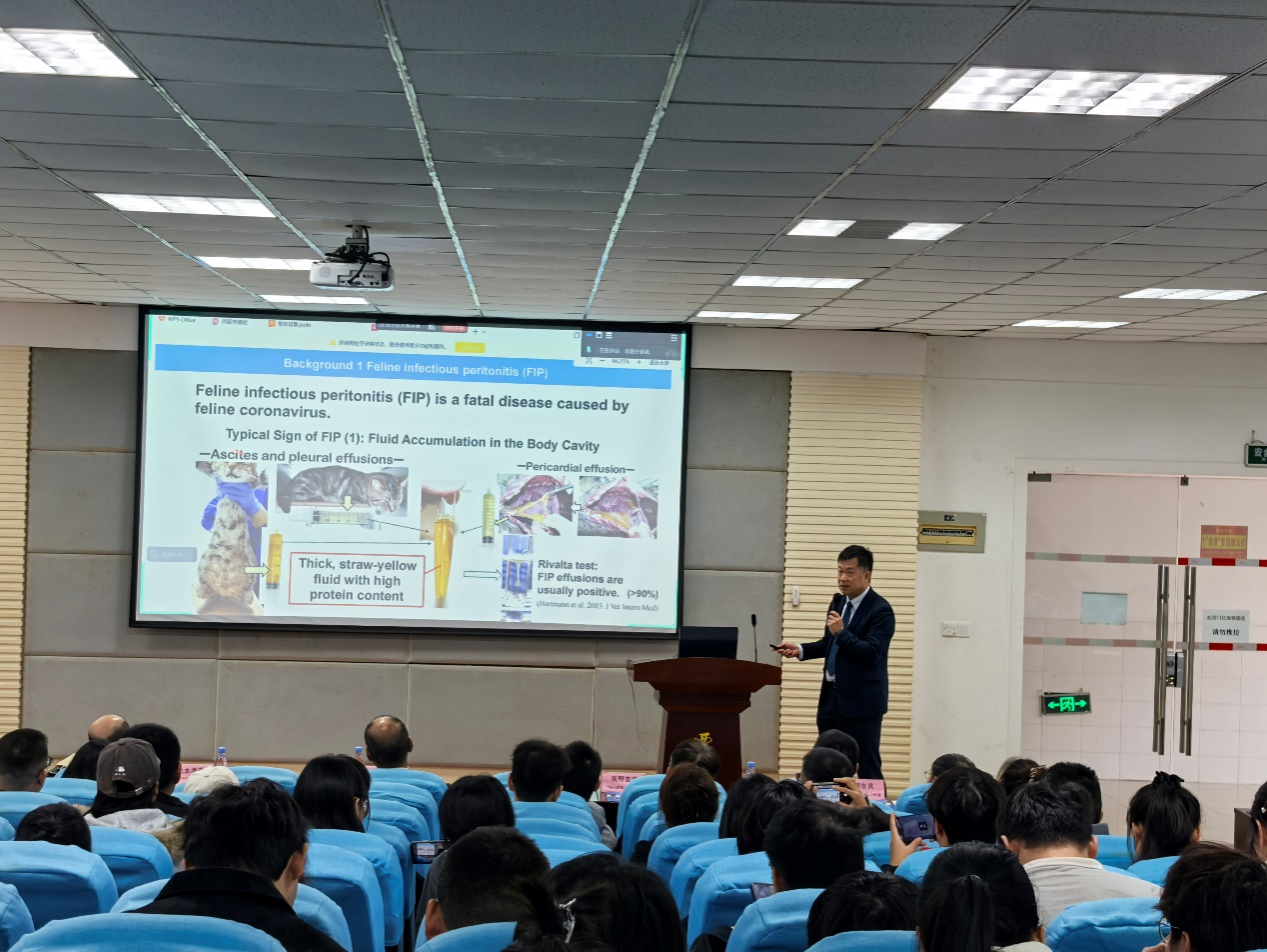交流会结束后,在动物医院报告厅举办了一场学术报告会。报告会由方仁东院长主持,吸引了近200名师生通过线上线下方式参与。报告会上,柏本孝茂教授深入解析了创伤弧菌感染的致病机制,为师生们带来了该领域的前沿知识;高野友美教授系统阐述了猫传染性腹膜炎的病理特征及疫苗研发进展,让师生们对这一疾病有了更深入的了解;田岛一树博士则分享了伴侣动物角膜再生的前沿研究成果,拓宽了师生们的学术视野。报告会现场学术氛围浓厚,师生们与专家进行了深入的交流和讨论。
