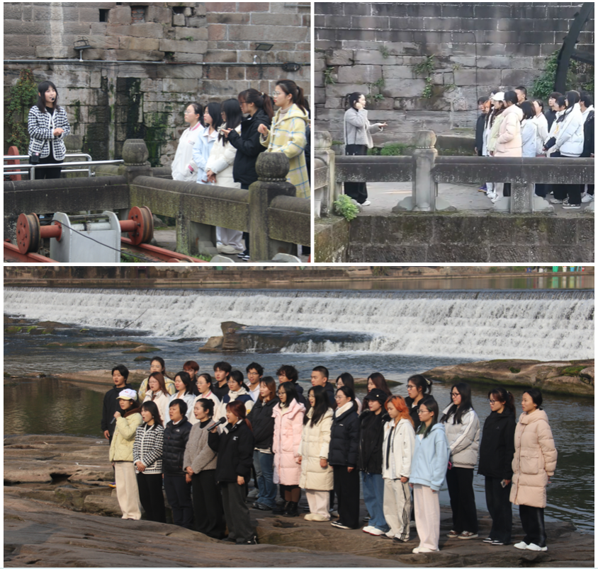 活动第一站来到万灵古镇。刘晓兰和尚丽娜老师向同学们讲述了重庆抗战时期历史以及船闸的重要作用——作为民族命脉的战略运输通道,它不仅承载着生命线的意义,也传递着兽医药械、农畜物资背后的深远价值。