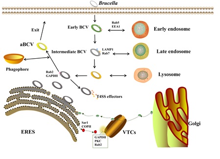 图1.布鲁氏菌的胞内循环过程