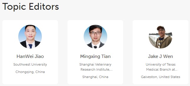 青年教师焦寒伟博士受SCI国际学术期刊《Frontiers in Cellular and Infection Microbiology》编辑部邀请,担任该期刊客座编辑,主持“Brucella: intracellular survival, epidemiology, prevention and therapy”(布鲁氏菌:胞内存活、流行病学、预防和治疗)为题的前沿专刊(Research Topic)。焦寒伟博士确定专刊的主题后,邀请了美国德克萨斯大学加尔维斯顿医学分部(The University of Texas Medical Branch at Galveston)Jake J Wen教授和中国农业科学院上海兽医研究所田明星副研究员组建了客座编辑团队,共同负责该前沿专刊的组稿,专刊网址://www.frontiersin.org/research-topics/51518/brucella-intracellular-survival-epidemiology-prevention-and-therapy