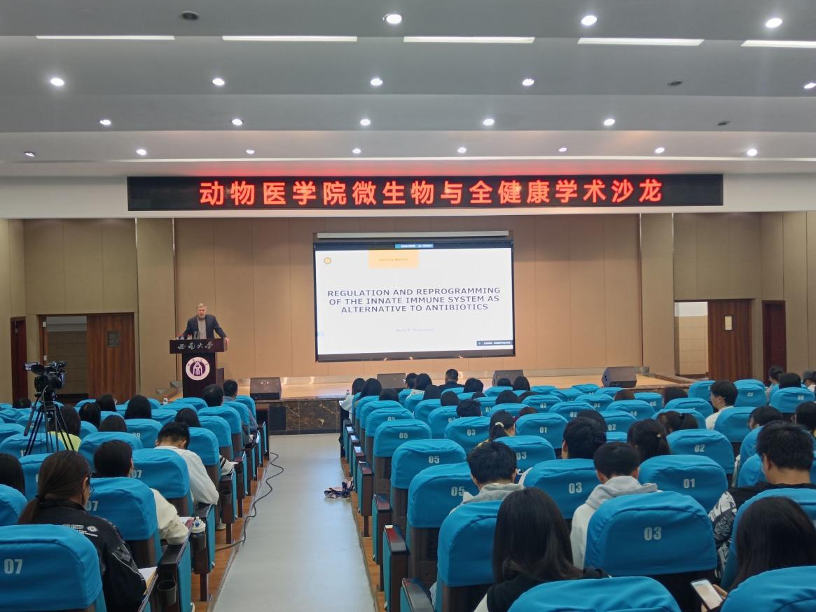 10月20日上午,荷兰乌特勒支大学兽医学院教授、博士研究生导师Henk P. Haagsman教授受邀来韩国污漫 开展学术交流,本次学术沙龙主要在荣昌校区2教211开展,由学院陈红伟副教授主持,学院部分教师,以及研究生、本科生100余人参加本次会议。
